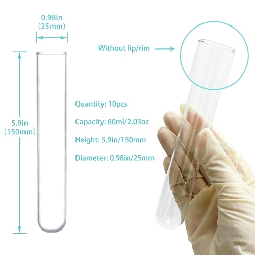 10pcs 60ml Glass Test Tubes, 25x150mm 3.3 Borosilicate Glass Test Tubes for Scientific Experiments, Party and Home Decorations, Candy Storage and Plant Propagation
