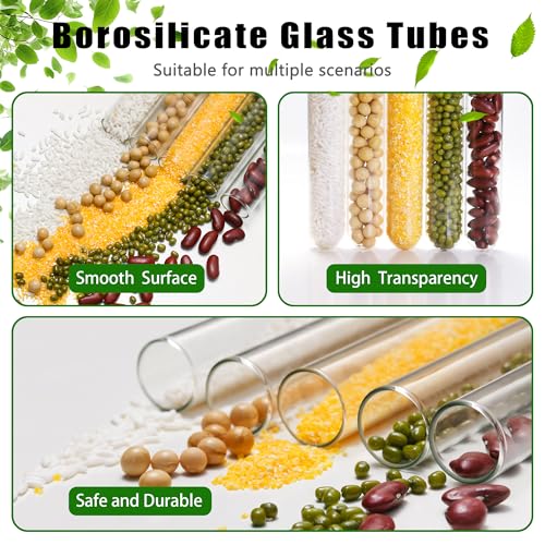 Material: These glass test tubes are made of 3.3 borosilicate glass, which has high heat resistance, acid and alkali resistance and good stability, laboratory grade glassware.