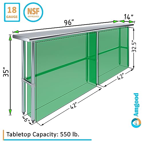 14 in. x 96 in. Open Base Stainless Steel Work Table | Residential & Commercial | Food Prep | Heavy Duty Utility Work Station | NSF
