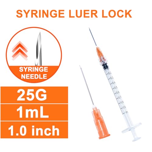 1ml ,100 Pack, 25G 1 inch Syringes with Needle, Needle Luer Lock Syringe, Individually Sealed Package for Scientific Labs,Feeding Small Animals,Dispensing,Applicator,Watering.