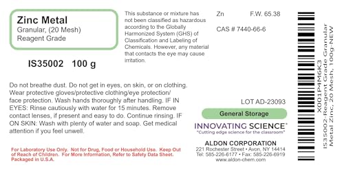 ALDON Innovating Science Reagent Grade Granular Metal Zinc, 20 Mesh, 100g – The Curated Chemical Collection