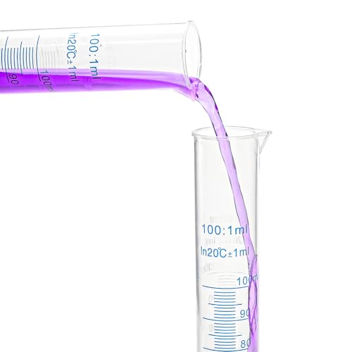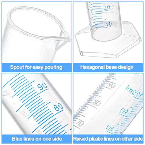 Double-sided Scale: Clear measuring cylinder with painted blue lines on one side and raised plastic lines on other side make it easy to read and ensure easy identification and accurate measurement of liquids.
