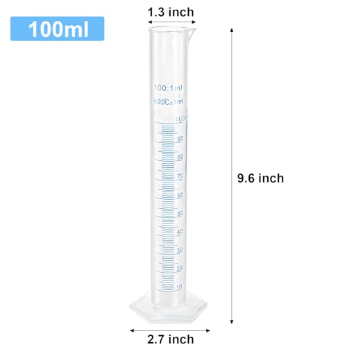 Package Included: 12 pack 100ml plastic graduated cylinders. Transparent graduated cylinder for safe, accurate and rapid liquid transfer.