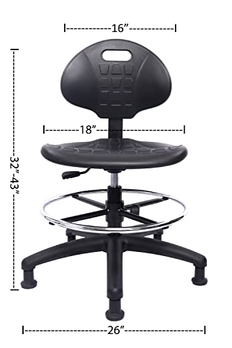 Chair Master Drafting Stool – Easy to Clean! Ergonomic Polyurethane Chair. Seat Height Adjustable w/Heavy Duty Footring for Home, Automotive, Lab, Cleanroom (Glides, Medium Stool)