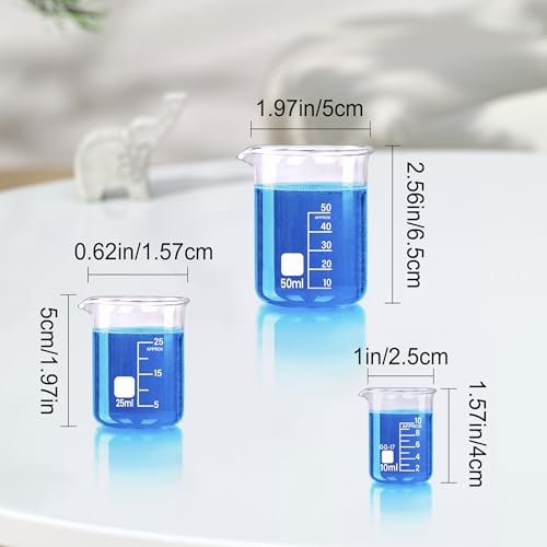 Various Capacities: Our glass beakers set contains 5 sizes of lab beakers, including 10, 25, 50, 100, 250ml, (0.34, 0.85, 1.69, 3.38, 8.45oz), meets your various needs, can be used in the laboratory, kitchen, garden, or medical field, chemical industry, etc.