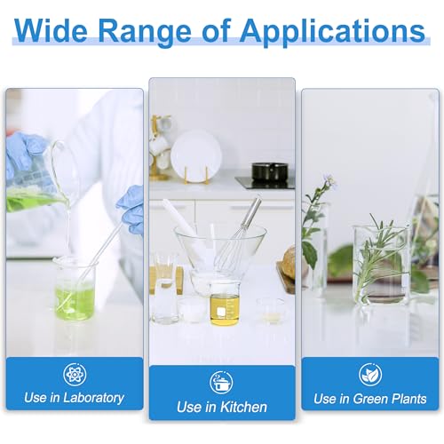 Premium Material: The low form borosilicate beaker has uniform wall thickness (1.74mm) and good thermal stability, is sturdy and durable, resistant to high temperature, corrosion, heat shock, acid and alkali.