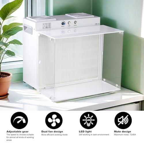 Laminar Flow Hood 17“x13” FFU Inoculation Box Fan Filter Unit for Laboratory, Clean Room, Mushroom Room Mycology Supplies Dual Fan Air Filtration System(Include HEAP Filter with H12 Filter Class)