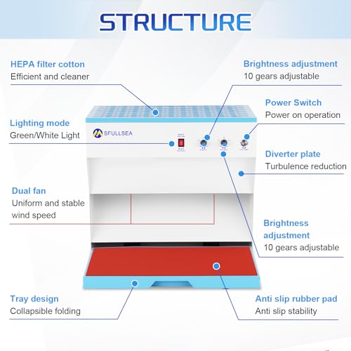 5.【Application】: The laminar flow hood is equipped with HEPA high efficiency filter, can adapt to a variety of clean environment requirements of work. Suitable for replacing mobile phone protective film, repairing mobile phone precision parts, etc. It can also be used in clean room, tissue culture seedlings, edible fungi and laboratories. However, this product can not achieve 100% dust-free effect, if you have high requirements for cleanliness, please choose a more professional product.