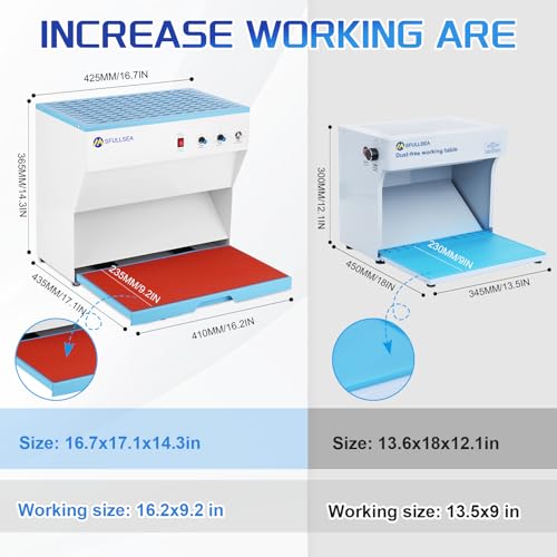 1.【Working area 16.2×9.2in】: Upgraded large size body, the working area is increased compared to the previous one, which can handle more samples at one time and can meet the demand of larger processing volume. The tabletop is stowable and can be pushed back into the machine after use, saving space and reducing contamination at the same time.