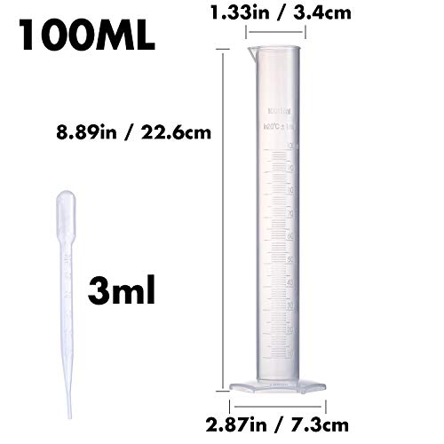 ???? LAB ESSENTIAL TOOLS: You need this set to help you do your experiment! This set includes 4 Graduated Polypropylene Measuring Cylinders in different sizes, and 4 Plastic Droppers in 3 ml