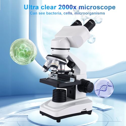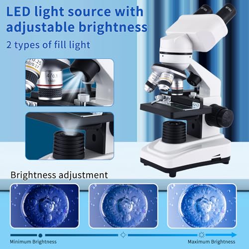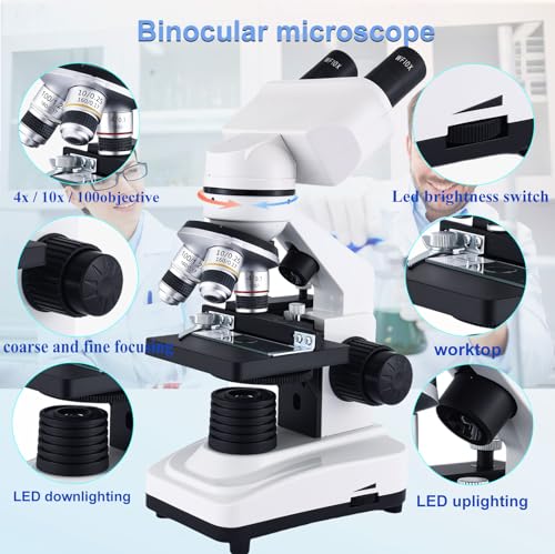 Microscope 40X-2500X Binocular Microscope WF10x and WF25x Eyepieces, Dual LED Illumination, Adult Microscope for School Home Lab Education (Binocular Microscope)