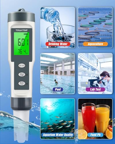 MULTIPURPOSE PH TESTER – Lightweight and portable size allows you to take TDS meter around easily in your pocket and do your measuring anywhere. Digital TDS pH meter for water can be used to test drinking water, swimming pools, pH balance in aquarium and any other liquids. pH meter with green backlit LCD helps to easily record readings, even in low light conditions