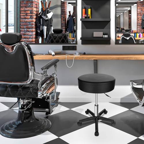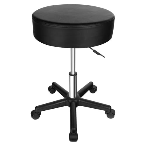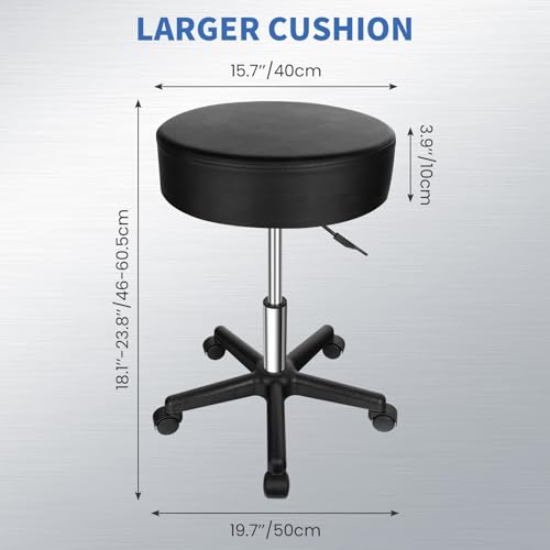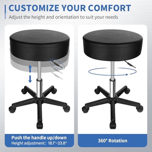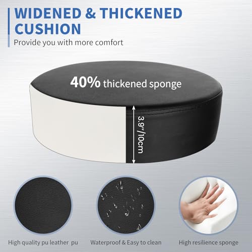 【UPGRADED COMFORTABLE PADDED SEAT】With a seat that reaches 15.7 inches in diameter, the seat thickness is increased by 40% to 3.9 inches, which greatly enhances comfort. Covered with bonded leather and double stitched for increased durability. 360° swivel design and adjustable height (18.1-23.8 inches) enhance comfort and versatility.