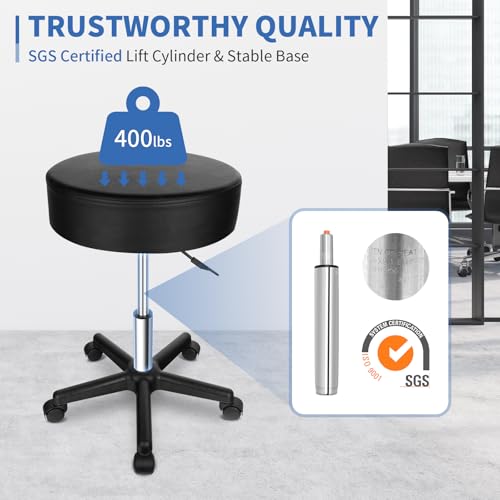 Rolling Stool with Wheels 400lbs Weight Capacity Larger Cushion Heavy Duty Adjustable Stool Chair for Tatoo Massage Office Salon Spa Lab Drafting Nail Teach 360° Swivel Thicker Cushion Rolling Stool
